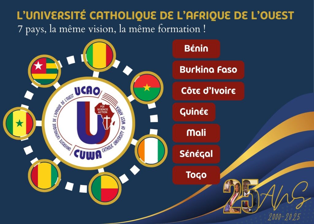L’Université Catholique de l’Afrique de l’Ouest (UCAO) est le plus grand réseau universitaire de l’Afrique de l’Ouest ! Composée d’Unités Universitaires présentes dans 7 pays, avec son rectorat est basé à Bobo Dioulasso au Burkina Faso, elle répond, dans sa constitution, son organisation et son fonctionnement, aux normes de l’Eglise régissant les Universités et Instituts Supérieurs, notamment aux normes des constitutions apostoliques Sapientia Christiana et Ex corde Ecclésiale et leurs Directives d’application.Se donnant pour objectif, conformément à la constitution apostolique Ex corde Ecclesiae, « d’assurer sous une forme institutionnelle une présence chrétienne dans le monde universitaire face aux grands problèmes de la société et de la culture »